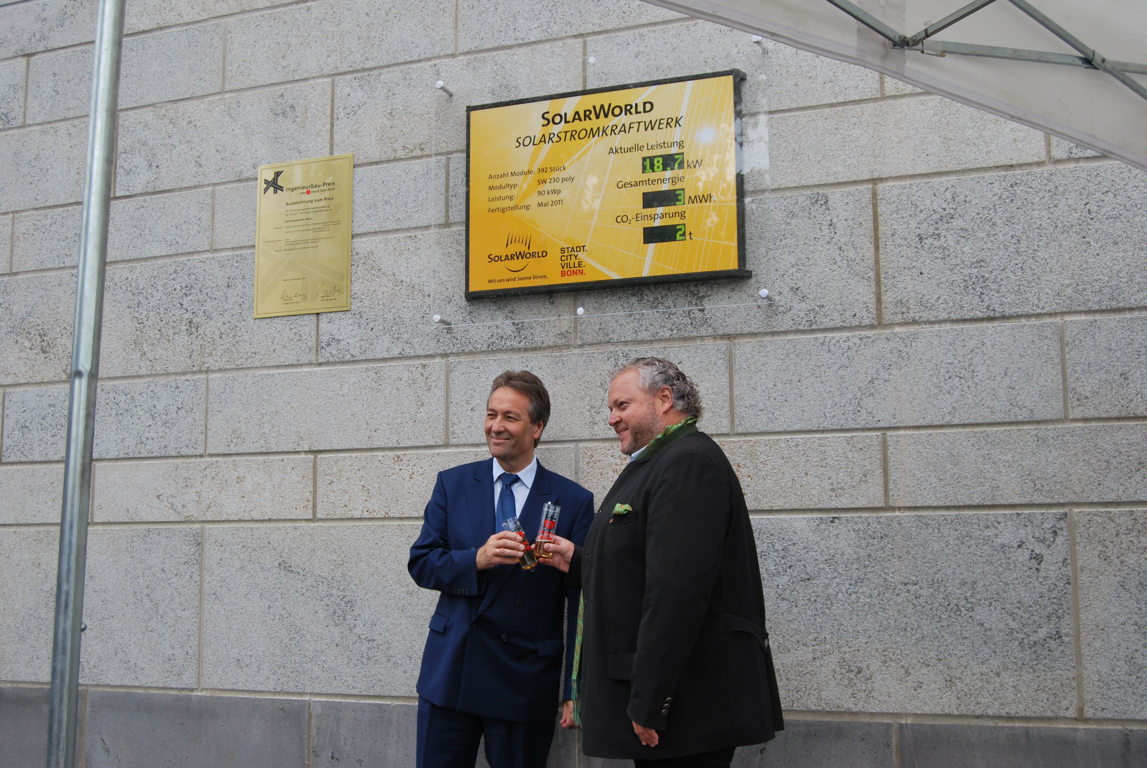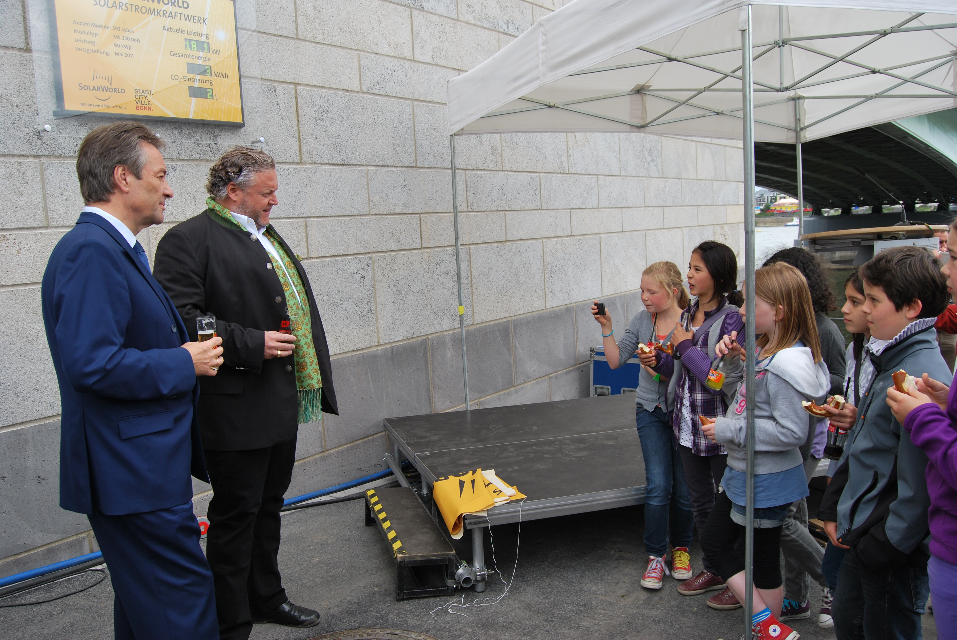 Die Bauzeit konnte leider nicht eingehalten werden, das lag aber an verschiedenen Gründen, nicht alleine an der Verwaltung. Der von einigen negativ eingestellten Kommunalpolitiker vorausgesagte ewige Stau oder sogar "Verkehrskollaps" auf der Brücke während der 4 jährigen Bauphase ist nicht eingetreten und so konnten die Kinder aus den verschiedensten Schulen die Fahnen der Vereinten Nationen für die UN-Stadt Bonn, zur Einweihung auf die BRücke tragen.