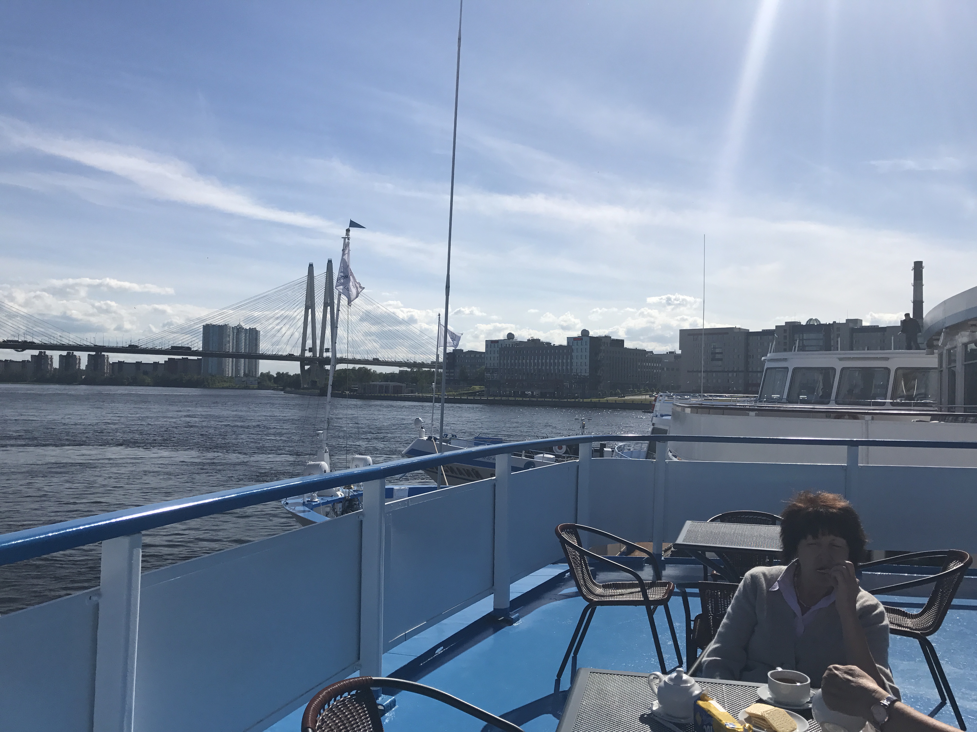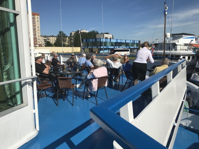 44 Gäste hatte ich auf MS Scholochow auf der Fahrt von St. Petersburg nach Moskau zu begleiten. Nach 2 Tagen Aufenthalt in St. Peterburg starteten wir auf der Newa unsere Fahrt zuerst gen Norden über Mandrogi zu den Kizhi-Insel, unserem nördlichsten Punkt der Reise. Die Fahrt ging dabei über den größten Binnensee Europas, den Landagosee. Vom Landagosee ging es weiter über eine Schleuse in den Fluß Swir und über eine weitere Schleuse in den Onegasee. 6 Schleusen aufwärts, auf dem Wolga-Baltic-Canal, brachten uns dann auf den Weisse See und zu unserem nächsten Anleger in Gorizy. Über Schleuse 7 und 8, abwärts, erreichten wir den Rhybinsker Staussee und unseren nächsten Halt, Uglitsch. Eine Aufwärtsschleuse beförderte uns in den Uglitsch-Stausee (Wolga). Über 6 Schleusen aufwärts und anschließend 3 Schleusen abwärts auf dem Moskau-Kanal, erreichten wir den Moskauer Südhafen, von wo aus wir noch 2 Tage Moskau genießen konnten um dann am 8. Juli den Heimflug anzutreten.